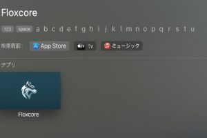 まず、Apple TVの検索機能を使って「Floxcore」と入力し、アプリを表示させます。
