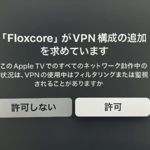 ここまでの操作によって、Apple TV側のFloxcoreアプリにVPNサーバー情報が正しくインストールされます。
