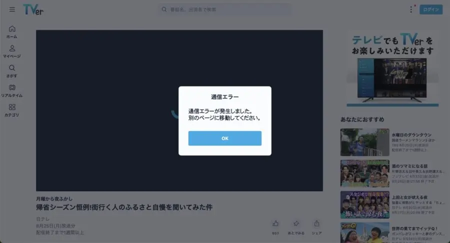 なぜ海外からTVerにアクセスできないのか?|「通信エラーが発生しました。別のページに移動してください。」