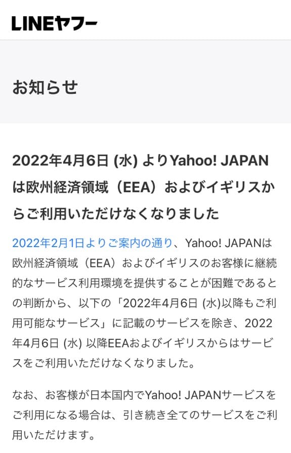 また、Yahoo! Japanもイタリアからのアクセスが制限されているため、Yahoo!ニュースなどのYahoo!関連サービスはVPN無しでは利用できません。