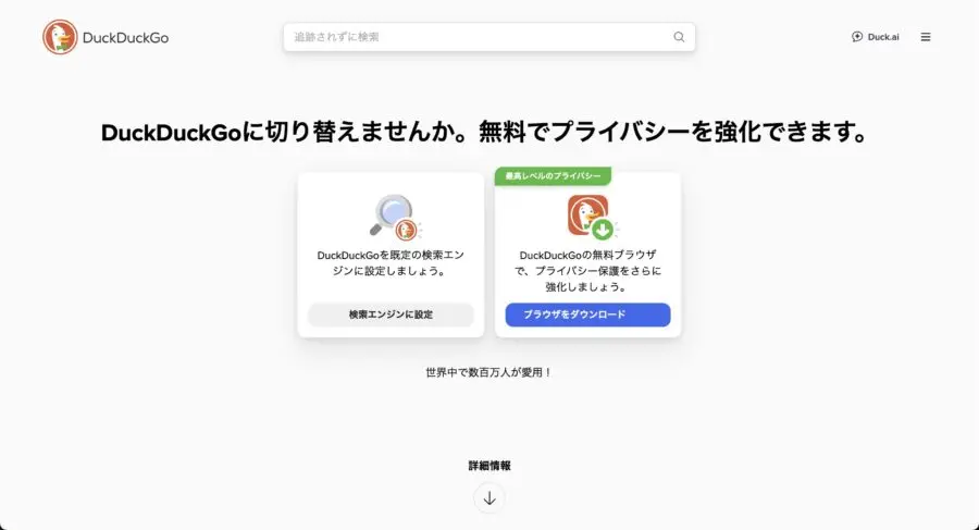 • 「プライバシー保護」を最優先事項としている検索エンジンで、Torブラウザのデフォルト検索エンジンにも設定されています。