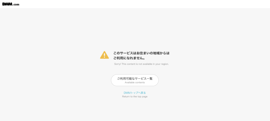 海外からDMM TVにアクセスするとエラー画面が表示され、動画を見ることはできません。