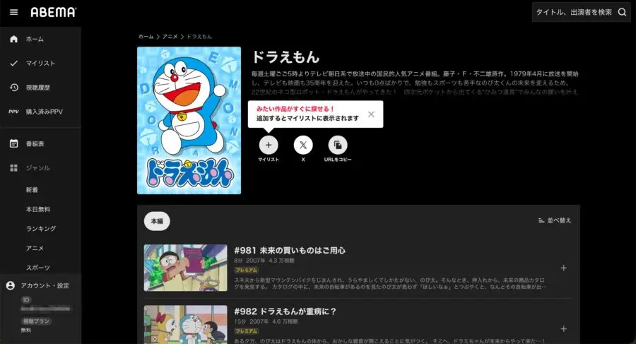 ドラえもんを配信している動画プラットフォーム
