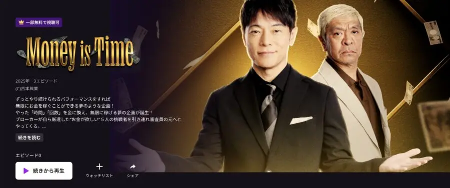 時間とお金という人生の根本的なテーマを中心としたゲーム形式の企画で、出演している芸人たちが展開する複雑な駆け引きが画面に映されます。