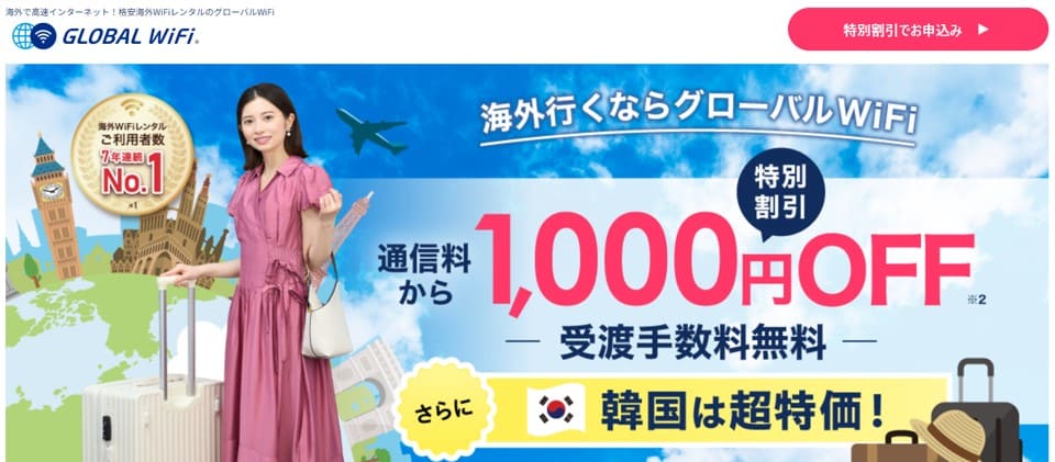 よく利用されているレンタルWi-Fiサービスとしては、グローバルWiFiなどが有名です。