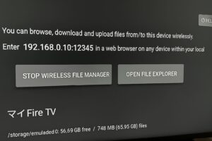 ここではFire TV Stickのアプリストアから入手できる「Wireless File Manager」を使用します。