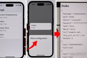ここでVPN設定情報が必要になるため、スマートフォンの12vpxアプリ(Floxcoreなど)を開きます。