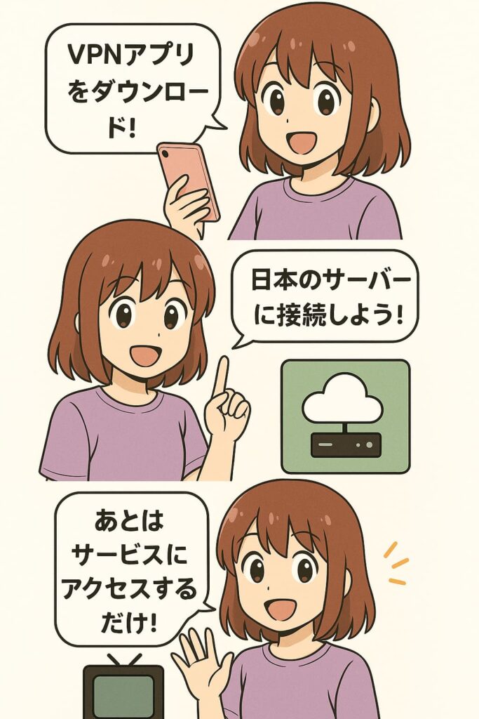 そうすることで、あたかも日本国内からアクセスしているかのように見せかけることができるというわけです。