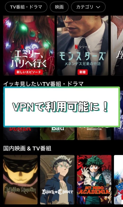 しかし、VPNを活用すれば、海外からでも日本版Netflixを見れるようになります。