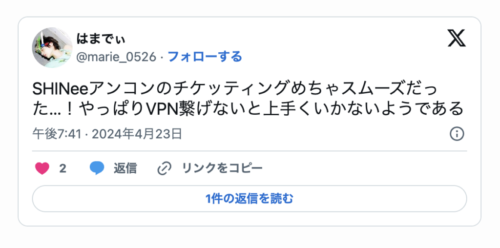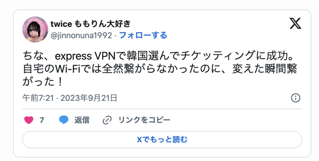 【利用者の口コミ】ExpressVPNでチケッティングに成功