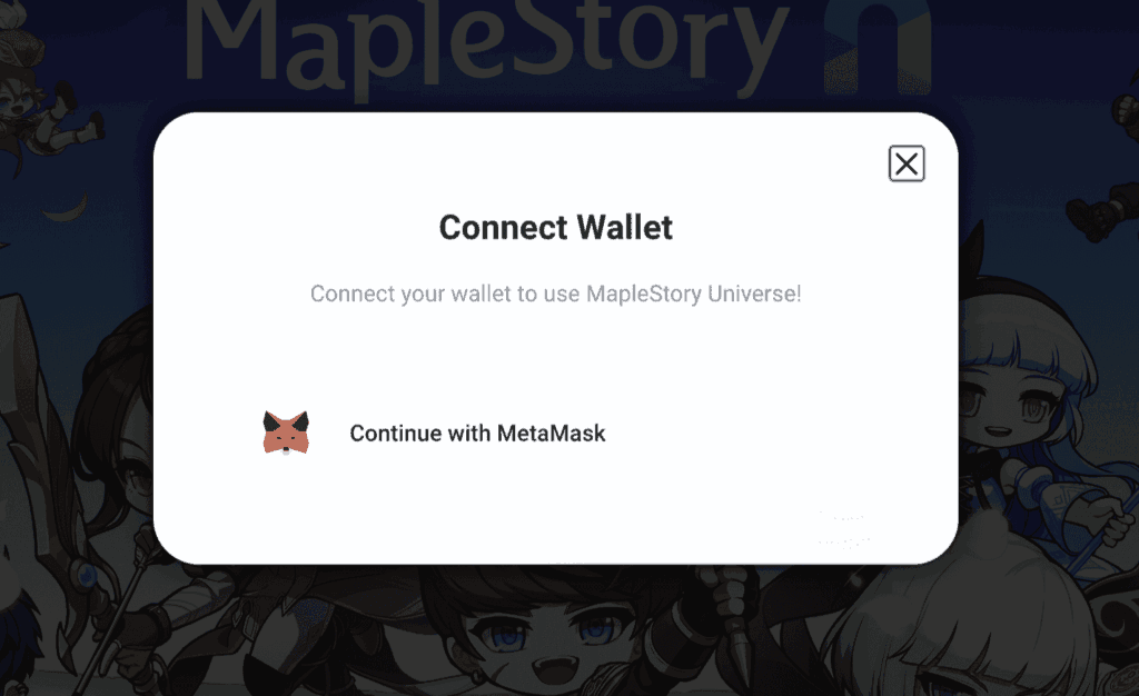 "Connect your wallet to use MapleStory Universe!(MapleStory Universeを使用するにはウォレットを接続してください!)"というメッセージが表示されます。