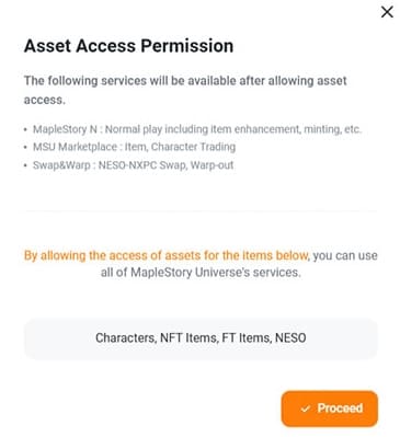 "Asset Access Permission(資産アクセス権限)"というメッセージが表示されるので「Proceed」をタップします。