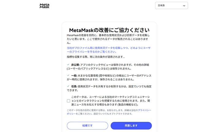 MetaMaskの改善協力を選択する