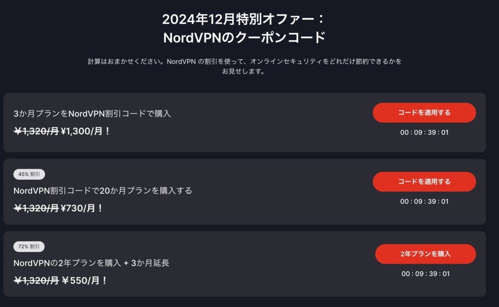 NordVPNの長期利用を検討されている方には、通常のクーポン適用よりも、キャンペーン期間中の契約をお勧めしています。