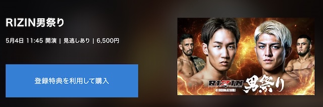 ABEMA視聴者向けの特別企画として、ABEMAプレミアム会員登録者がRIZIN男祭りのPPVを購入すると、後日4,000円分のキャッシュバックが受けられるキャンペーンを実施中です。