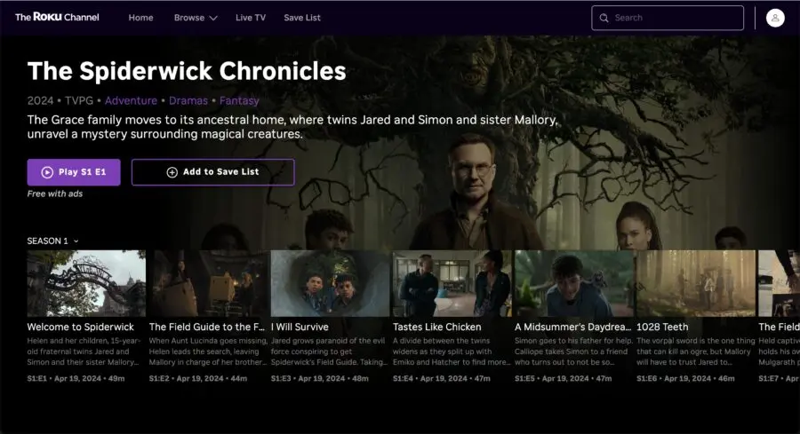 番組表などからRoku Channelの放送ページを開けば、Roku Channelがリアルタイムで日本から視聴可能になります。