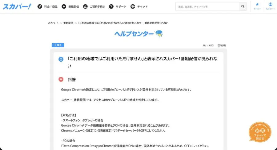 VPNを使用しているにもかかわらず、スカパー!にアクセスできない場合があります。