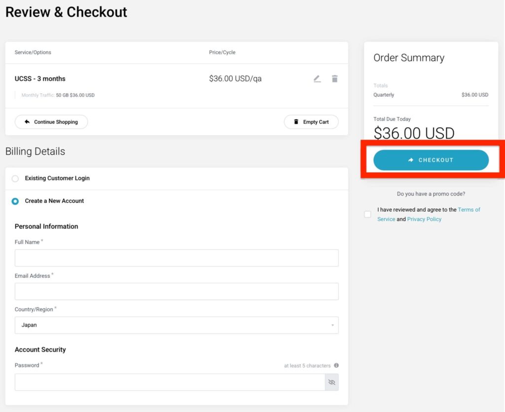3. 注文内容を確認し、アカウント情報を入力